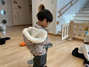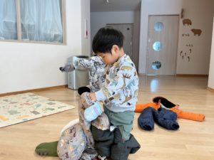 スノーウェアの着脱を頑張る子も。