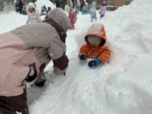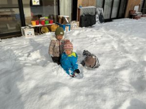 早速始まる雪遊び。