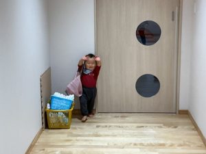 「ぼくもズボン履くの頑張ってるよ!」