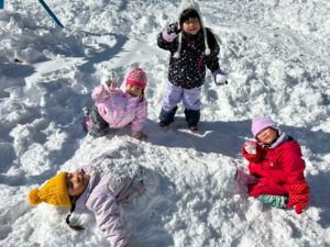 雪玉やサラサラな雪を投げ合ってたくさん遊びました^ ^