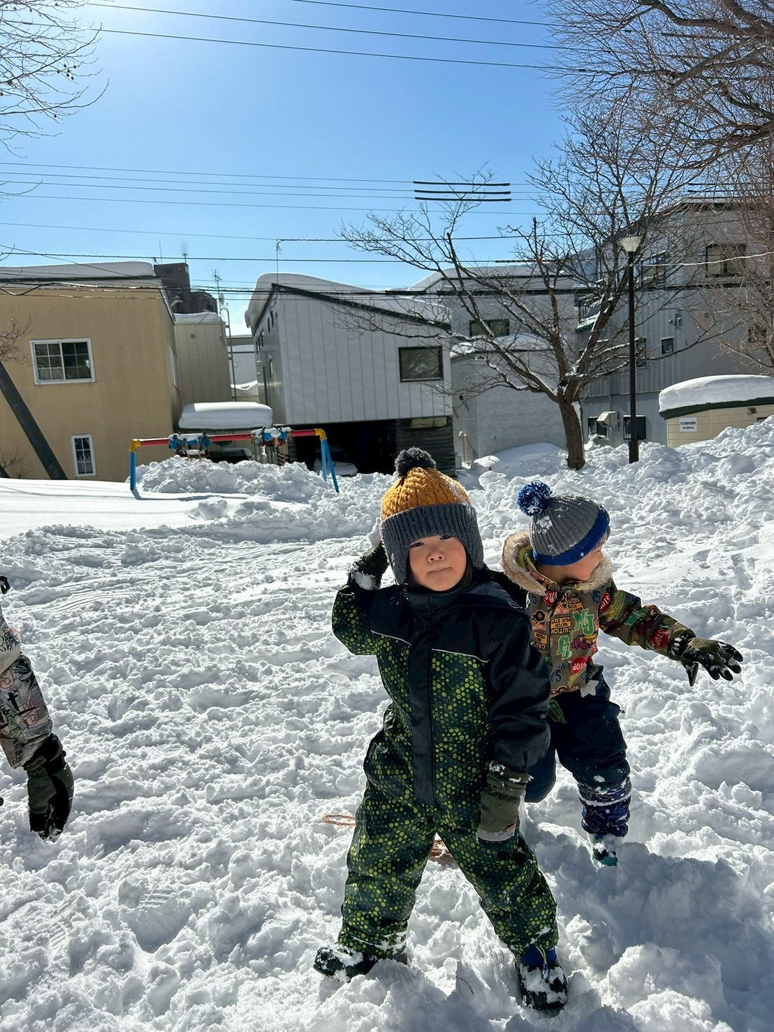 雪玉やサラサラな雪を投げ合ってたくさん遊びました^ ^