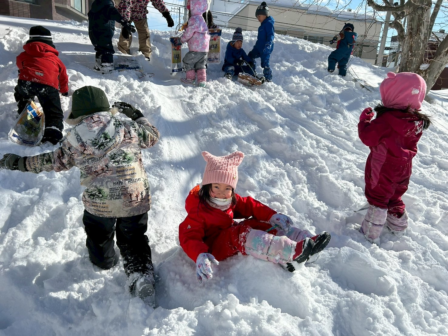 ⚠️高い雪山のすぐそばは道路🚗気をつけながら遊びました!
