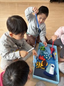 みんなで釣り方を話し合いながら遊ぶ姿が見られました🐠