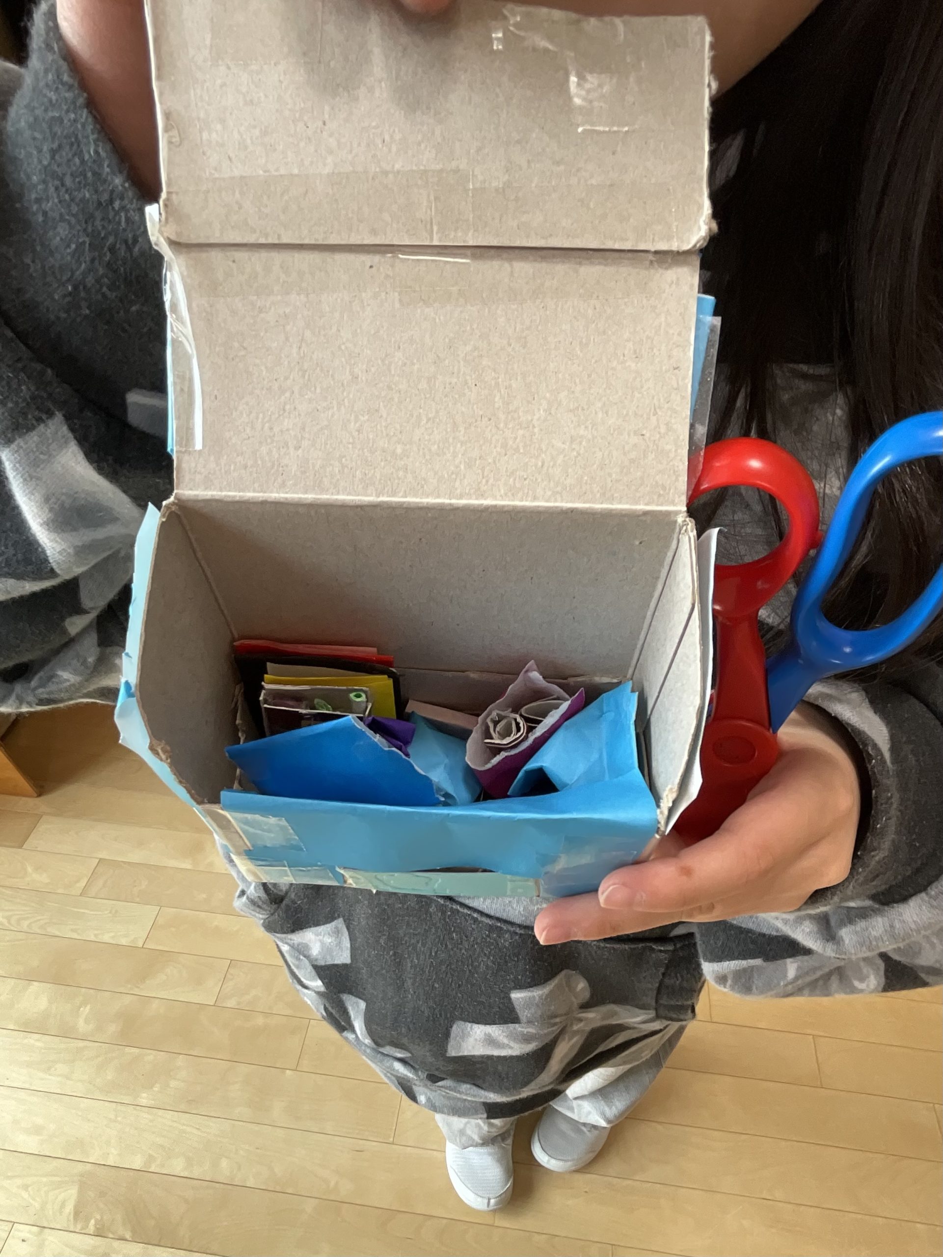 空き箱を使ってランドセル🎒を作っていました!