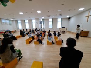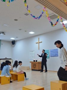 教会学校の場で、在園児・卒園児の来たいお友だちとお祝い、礼拝を行いました♪